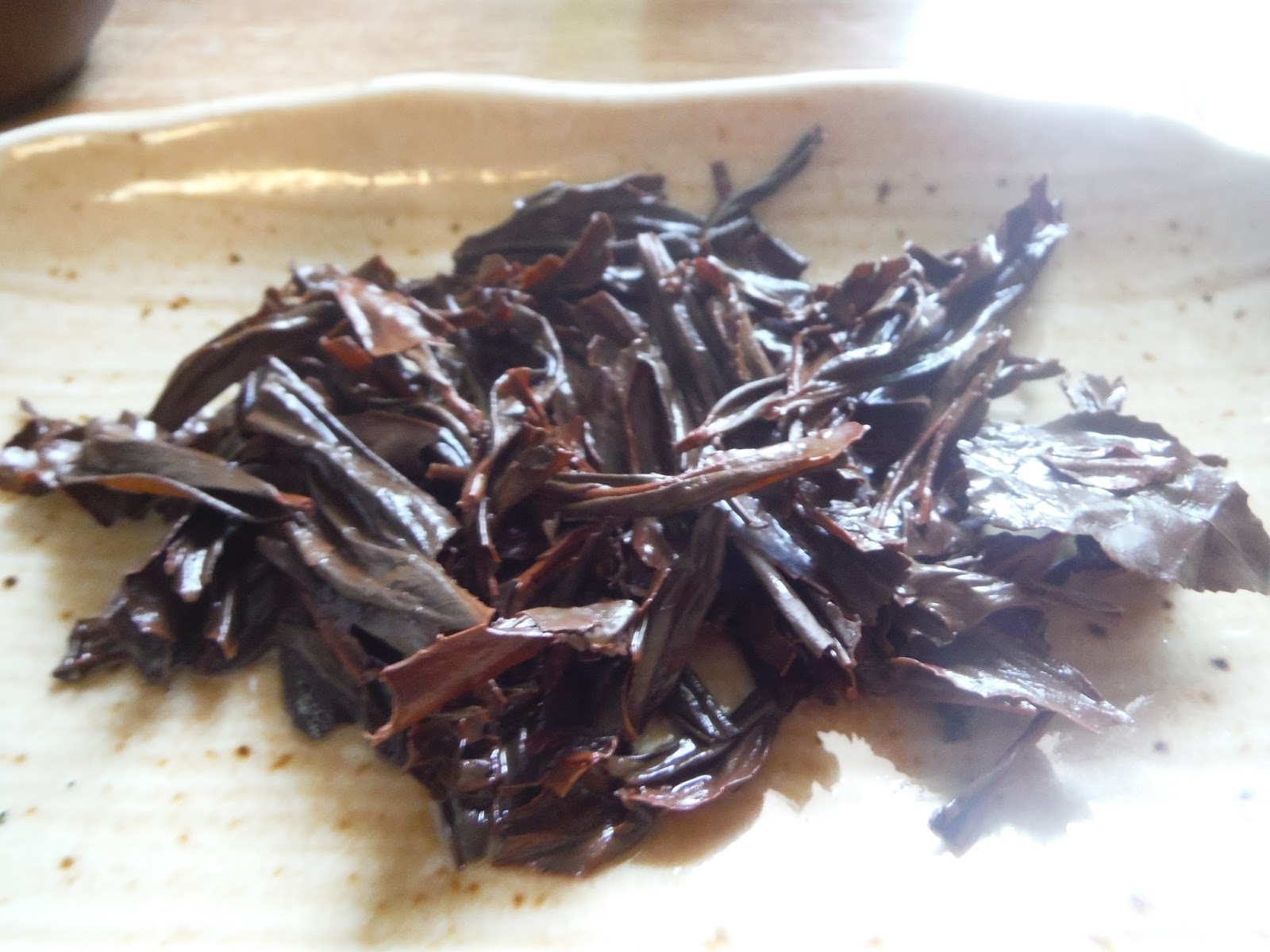 susz prezentuja sie ciekawie …. jest to herbata z jesiennych zbiorow wiec rozmiary lisci sa duze – jesli nie poddawac ich oksydacji – to powstala by herbata bancha.