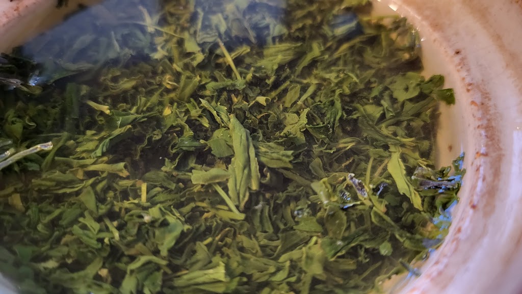 Herbata została zaparzona w naczyniu o pojemności 120cc czyli ½ szklanki . W wodzie o temperaturze ok.65℃.Pierwsze parzenie trwało ok.60sekund Po 3cim parzeniu herbata straciła walory smakowe.