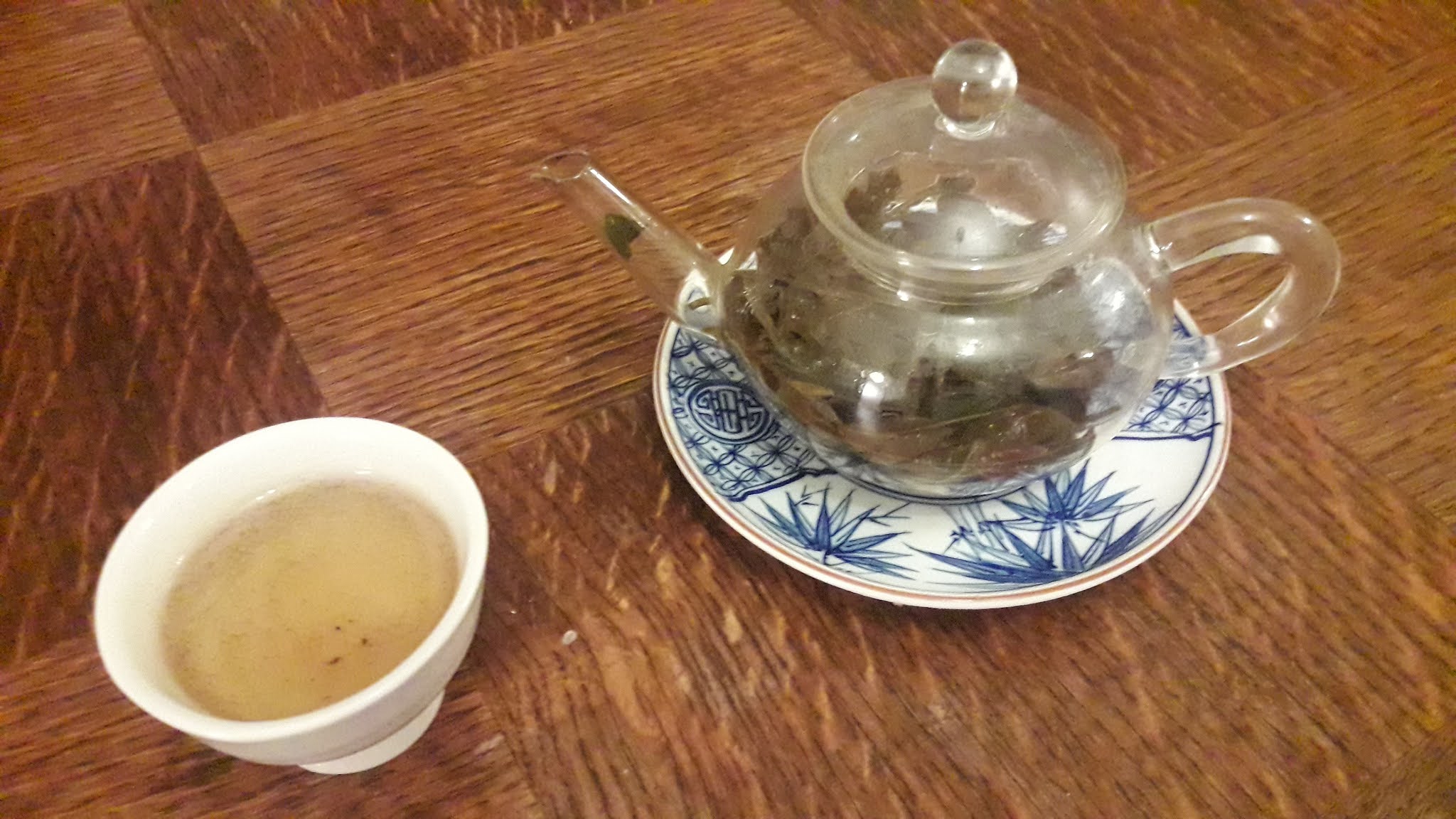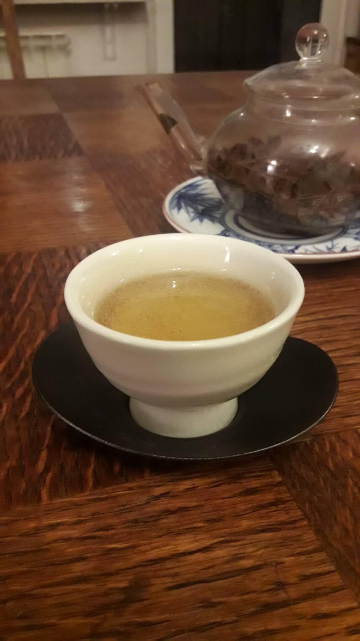 Ten pokaz w domu kultury był pretekstem do spotkania się i w grupie bliskich znajomych wypicia nietuzinkowej herbaty towarzyszącej konsumowaniu chińskiego” ciastka księżycowego 中秋月餅” 。。 Był to napar z listków Camellia Sinesnis odmiany yabukita – zbieranych w końcu sierpnia czyli kilka tygodni temu…