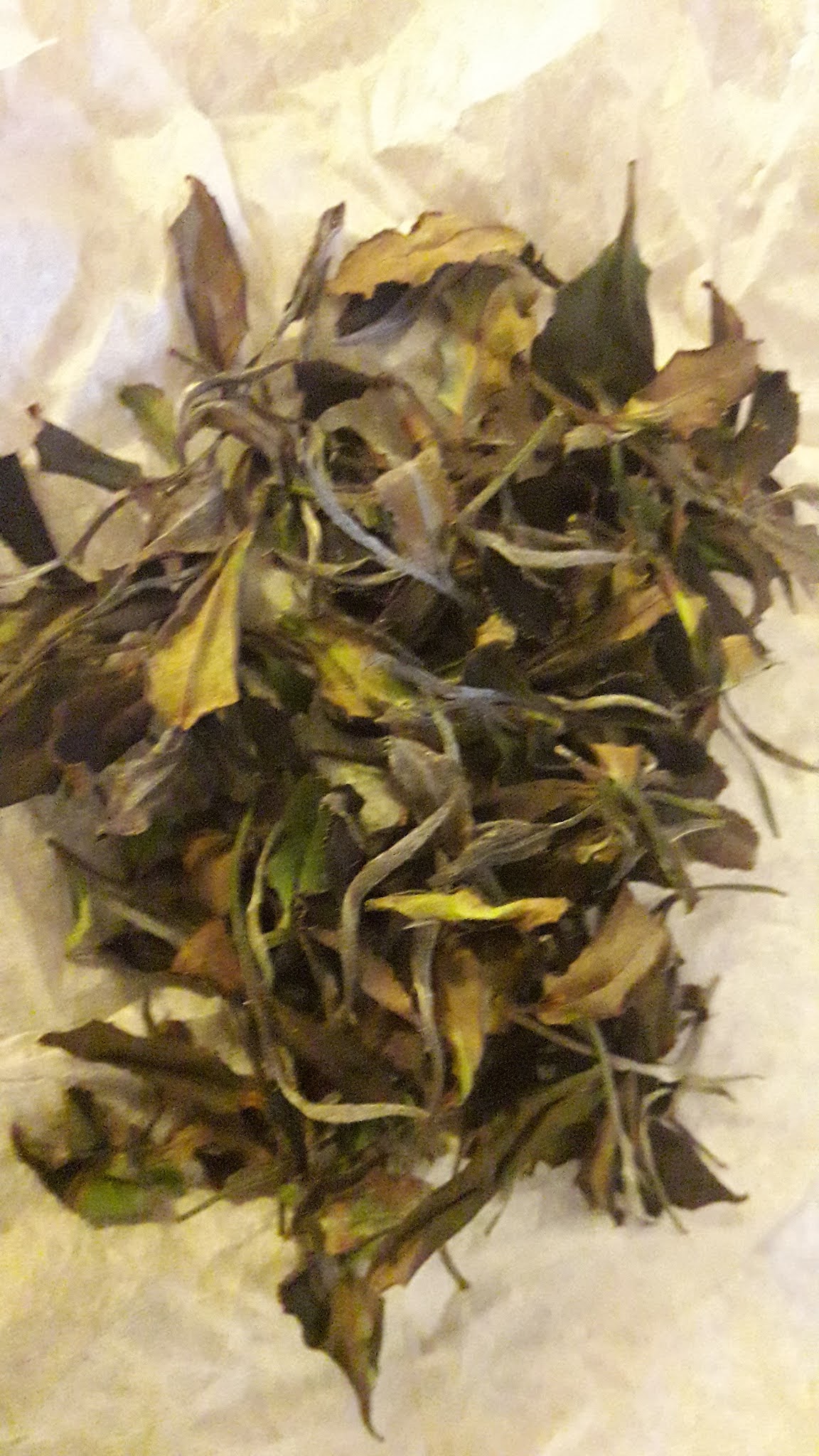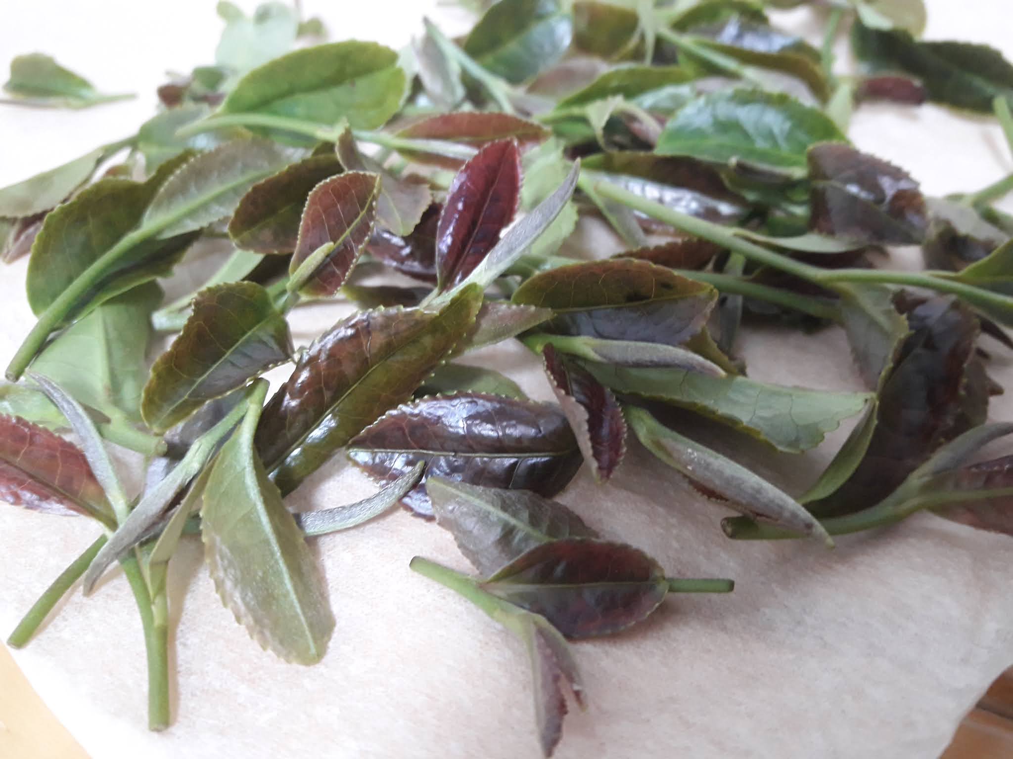 Prawdopodobnie związki chemiczne nie są tak mocno skoncentrowane i dodatkowo zbierane były tylko przebarwione z krzewu który właśnie był nietypowy ( czarna owca ) wśród innych. Doświadczenie z zeszłego roku podpowiada iż najlepiej w domowych warunkach powstaje herbata biała… W tym roku udało mi się zrobić mniej niż 10 gram – suszu herbacianego o niezwykłym aromacie