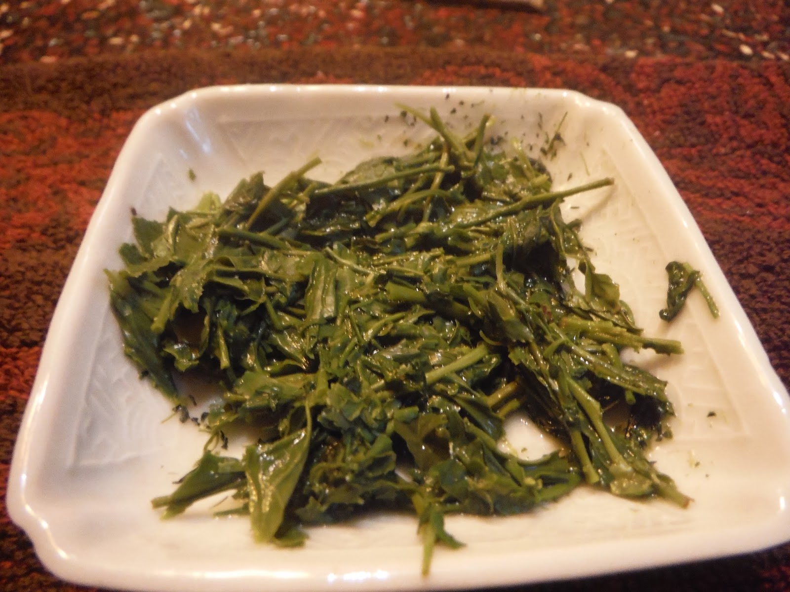 Po ok.2ch minutach całkowicie rozwinęły się listki. Smak bardzo wyrazisty o dużym ładunku gorzkich akcentów ..