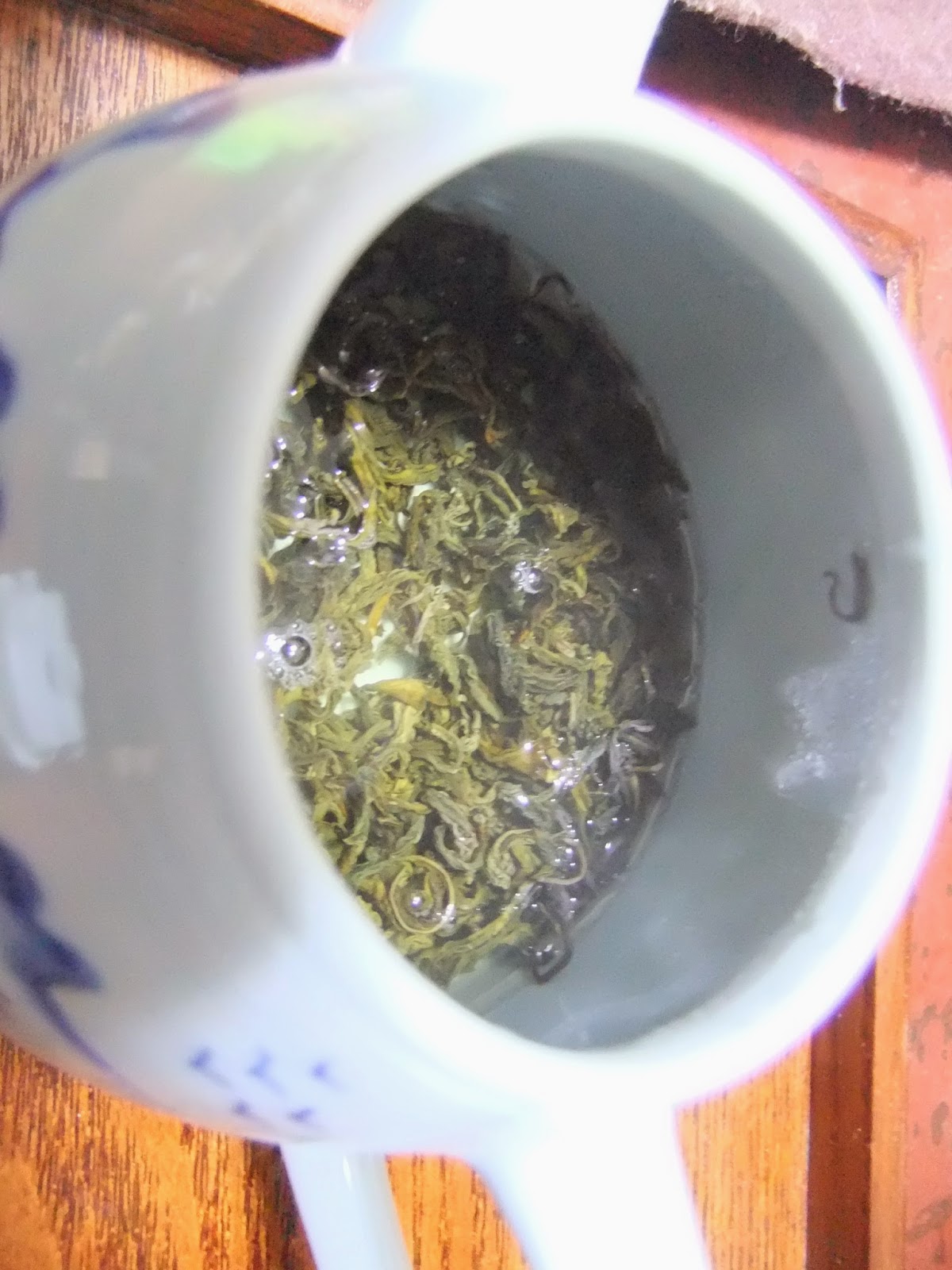 Sa Pa green tea – Fan Si Pan…..Z wygladu nic osobliwego zwykle skrecone listki. Ale po zaparzeniu okazuje sie ze ta zielona – posiada rozbudowany smak: