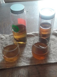 Eksperymeny – listki herbaty Ruby Black Tea – z ośrodka bawczego w Yuchi oraz z pojemniczka zakupionej herbatki w okolicznej franczyzie.